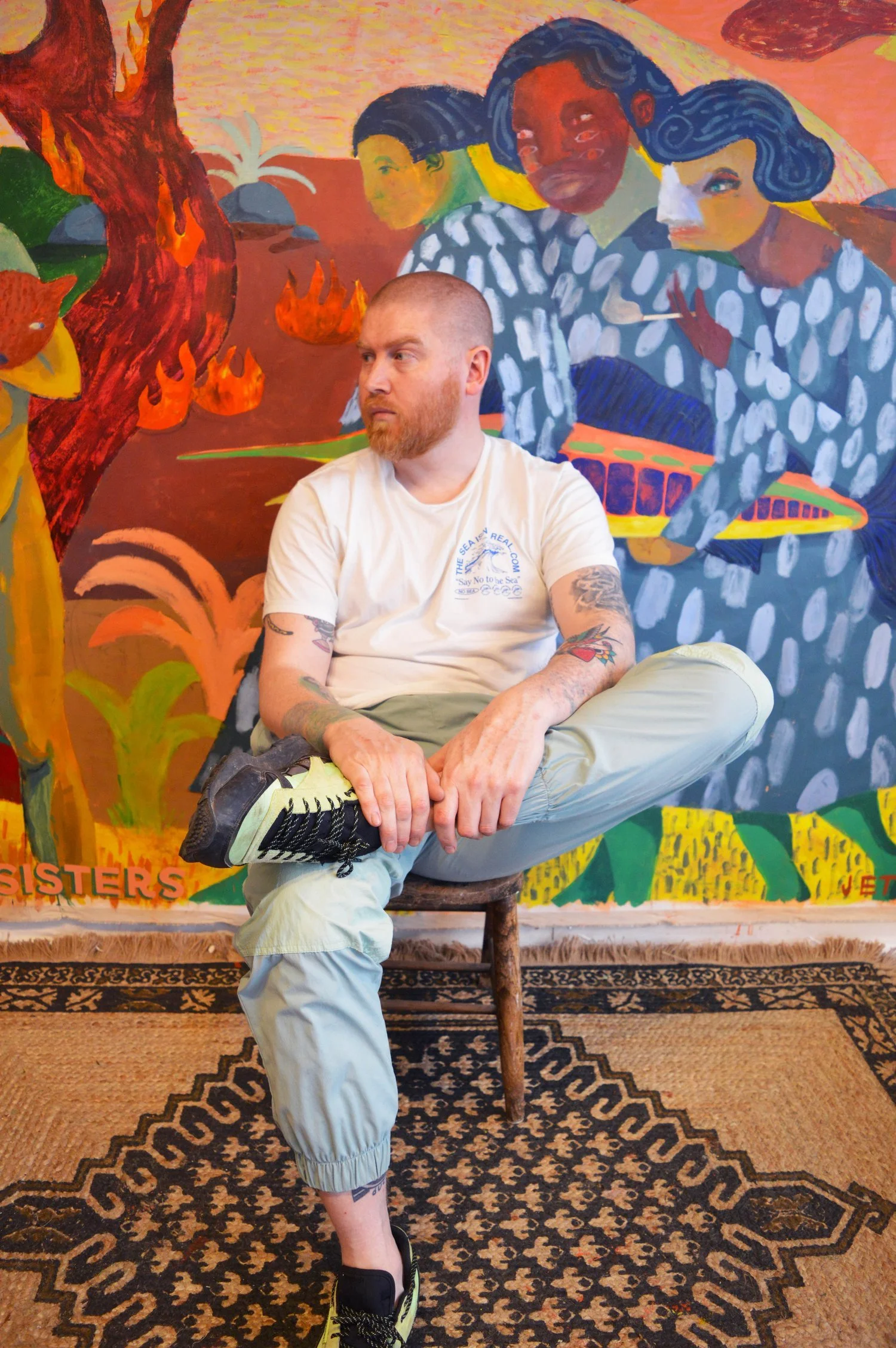 “Long before I painted on canvas I spent a large part of my creative life painting graffiti. Those years have informed my studio practice, even if it’s not always on a conscious level. Things like the immediacy and looseness of painting at large scale and the idea of being efficient in communicating ideas. These are the things that I bring to my studio practice.