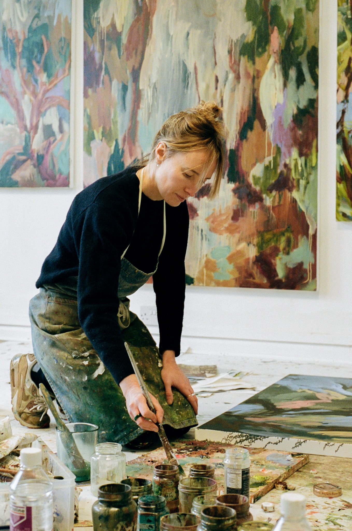 Mary’s work merges abstract and figurative elements to explore landscape through light, space and texture. Inspired by memories and emotions tied to specific places, her oil paintings emerge through intuitive gestures and layers, capturing fleeting moments. Painted both in the studio and en plein air, internal worlds mix with external worlds. Chance accidents keep the process exciting, leading her down unexpected paths. Seemingly insignificant drips create moments of beauty. The work has an urgency and turbulence and yet at the same time a calmness. Mary relishes the ever changing elements of nature and landscape, the wild and the peaceful, the ebb and the flow and it is this that she seeks in her paintings. She finds comfort in the cycles of the natural world, its unstoppable power and infinite beauty.