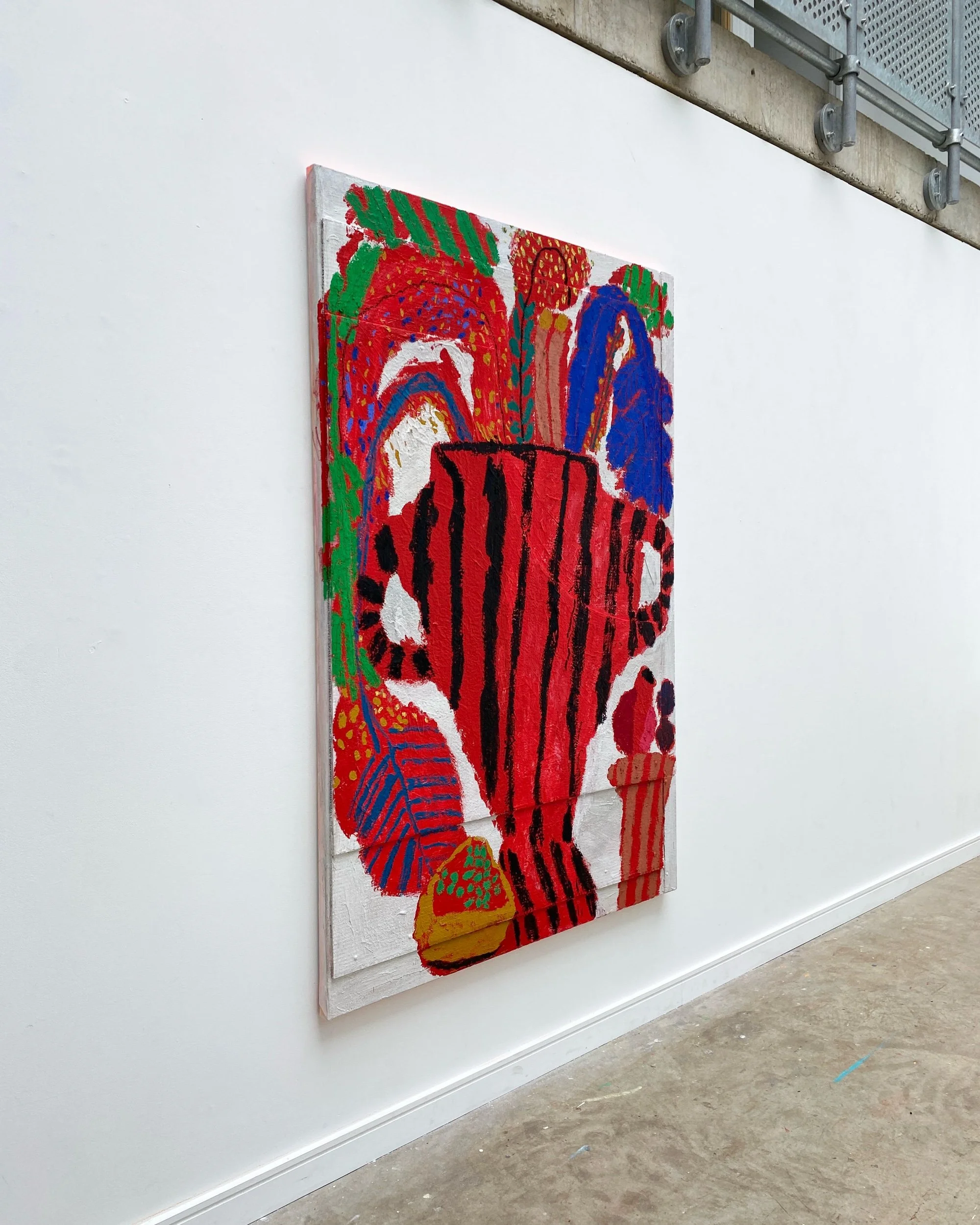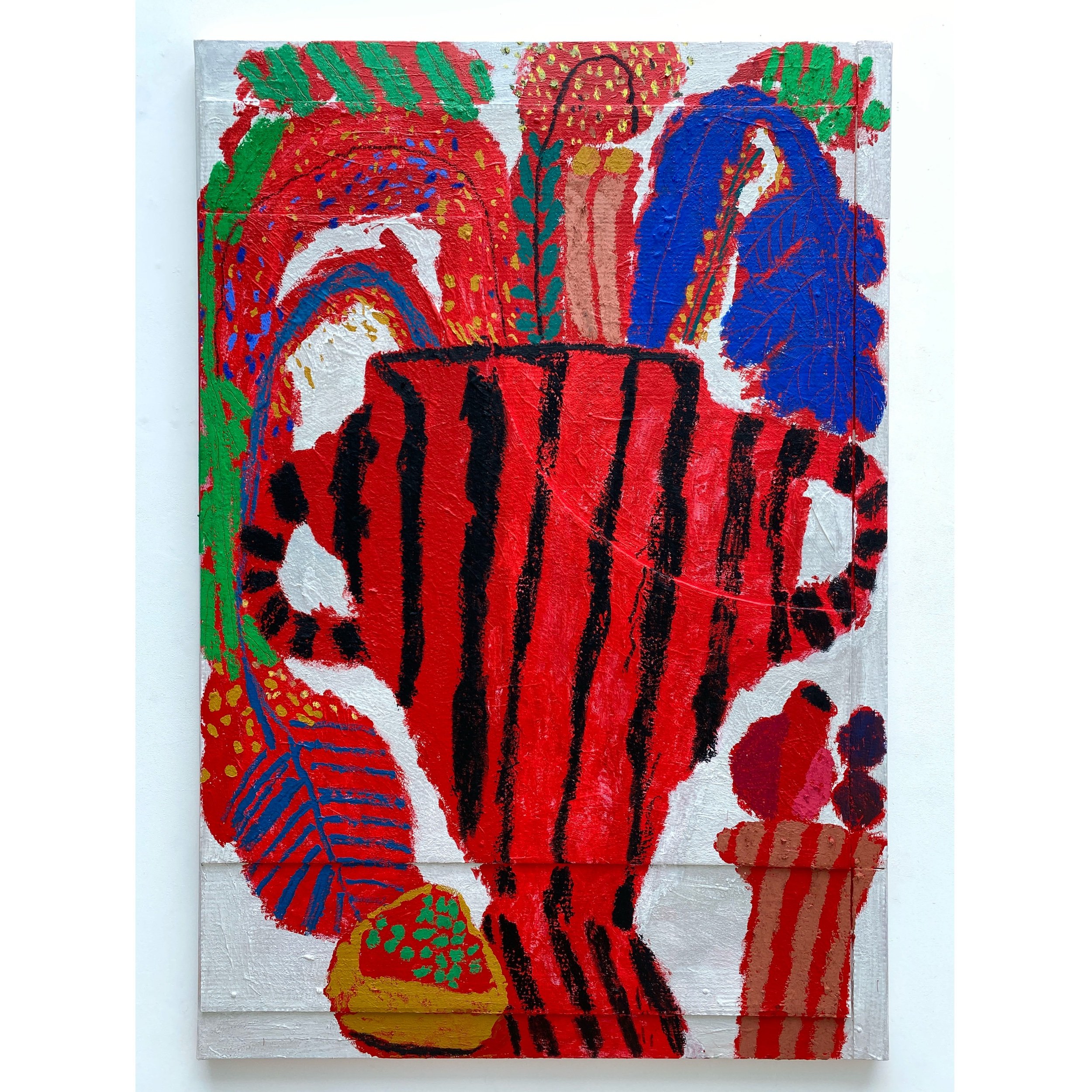 Cardboard, split pin, acrylic, pumice, oil pastel, oil stick and oil paint on linen